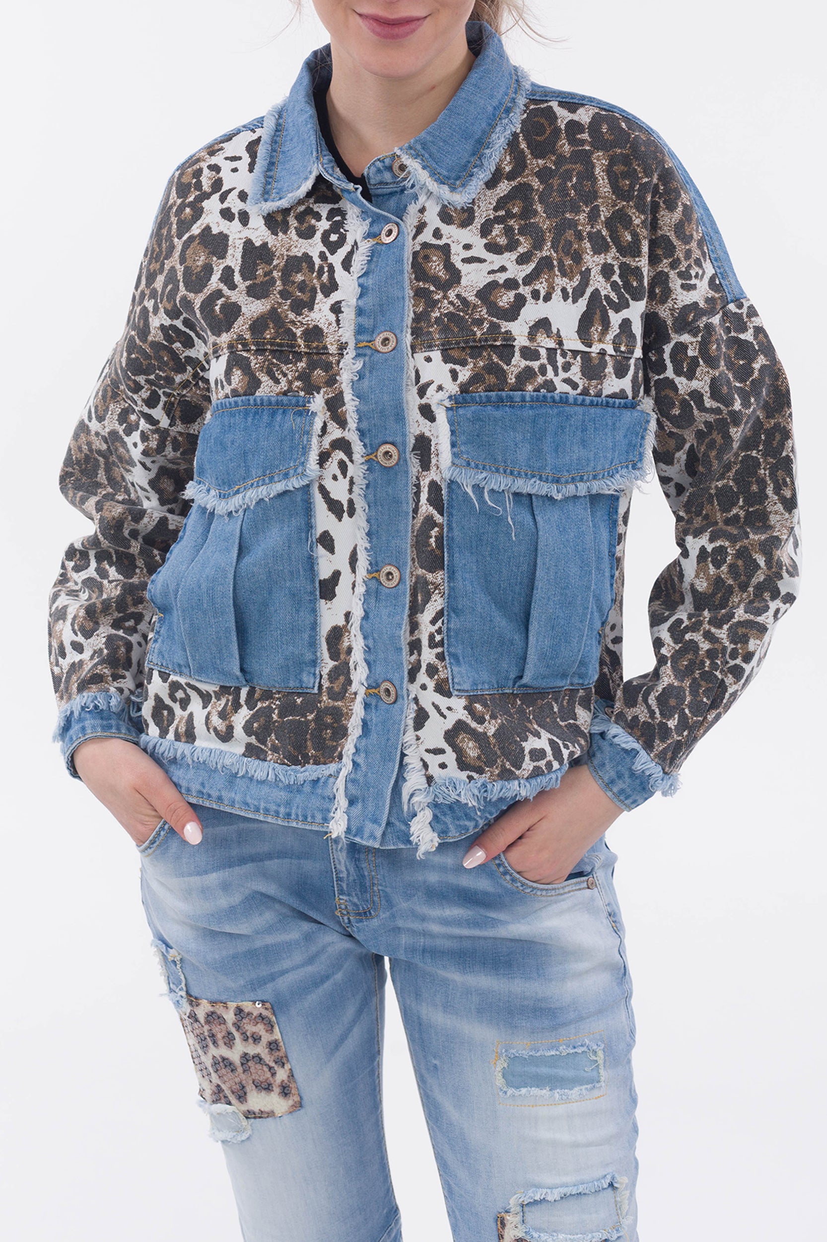 Dieser Look verbindet klassische Jeans-Elemente mit mutigen Prints und aufregenden Details. Mit dem Animal- Patchwork setzen Sie ein echtes Fashion-Statement. Lassen Sie sich inspirieren und entdecken Sie Styles, die Individualität und Trendbewusstsein perfekt vereinen!