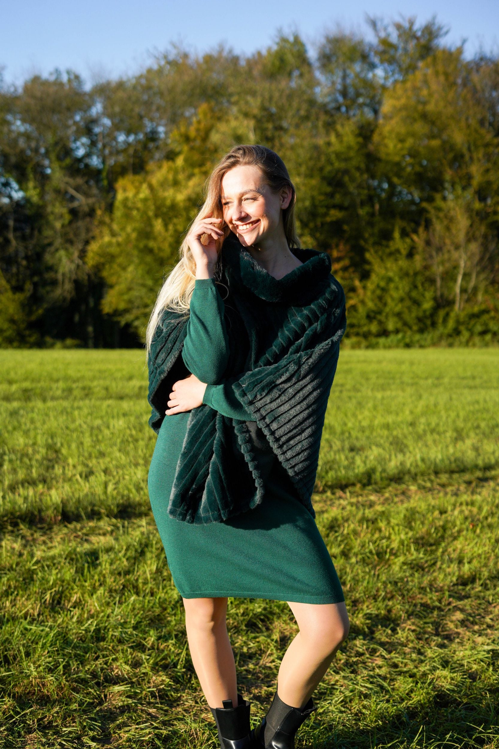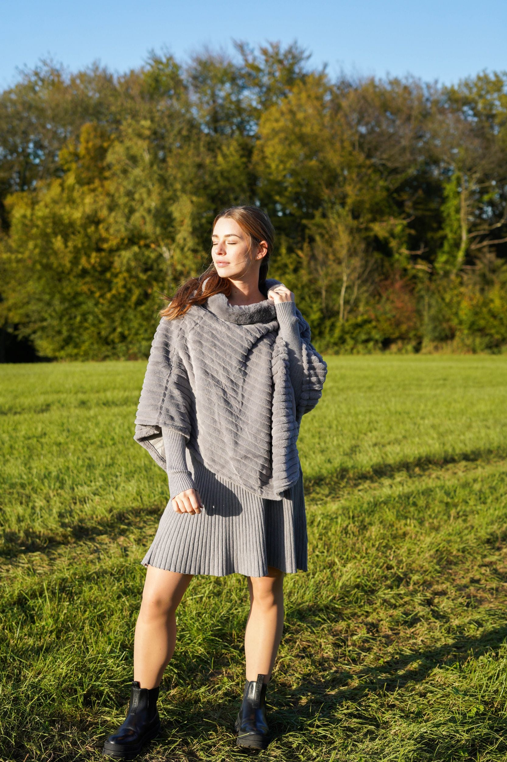 Ponchos sind eine weitere faszinierende Option für einen stilvollen Herbstlook. Diese fließenden, umhüllenden Teile können über einem schlichten Outfit getragen werden und verleihen ihm sofort eine Boho-Chic-Ästhetik. Sie sind ideal für entspannte Wochenendausflüge oder gemütliche Nachmittage in einem Café.