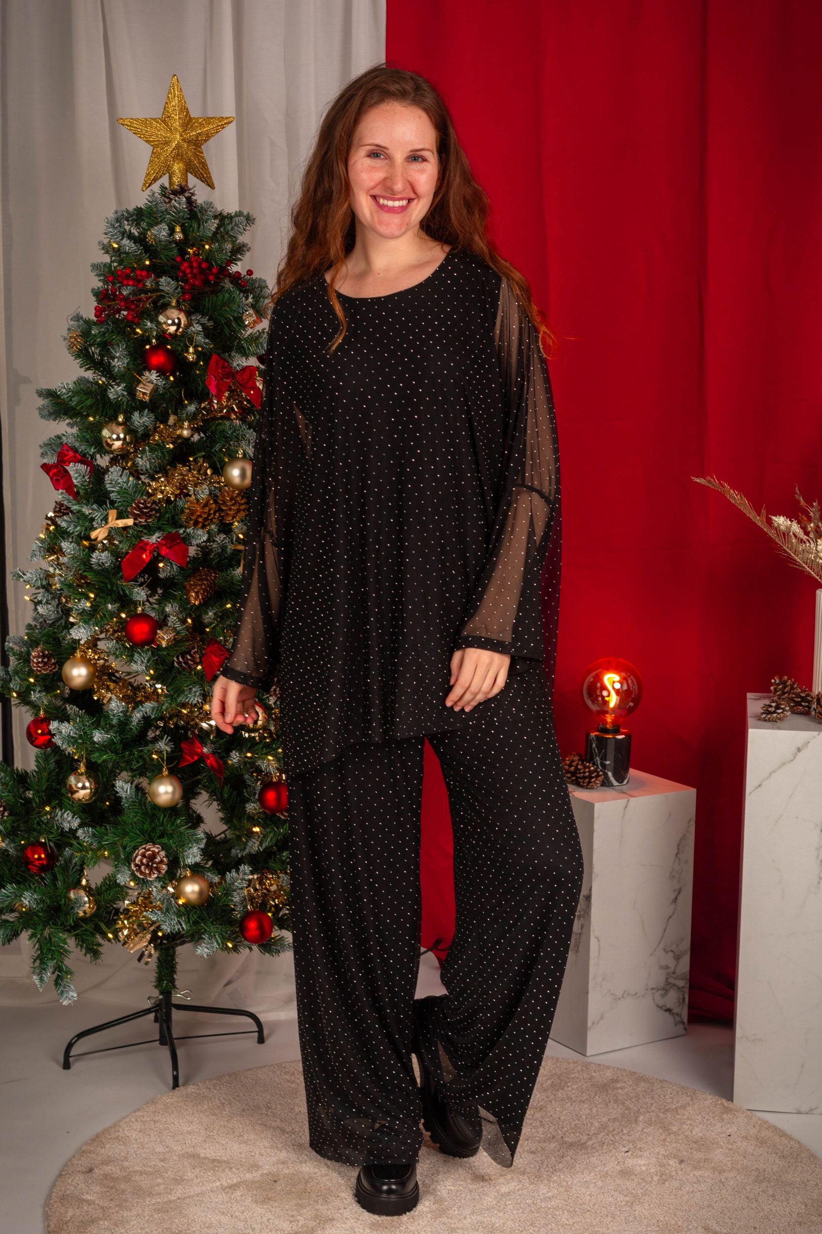 Von tiefem Schwarz bis hin zu edlen Metallic-Nuancen – diese Kollektion ist eine Hommage an stilvolle Raffinesse. Jedes Outfit umhüllt Sie mit festlichem Glanz und betont Ihre individuelle Ausstrahlung für magische Momente in der Weihnachtszeit.