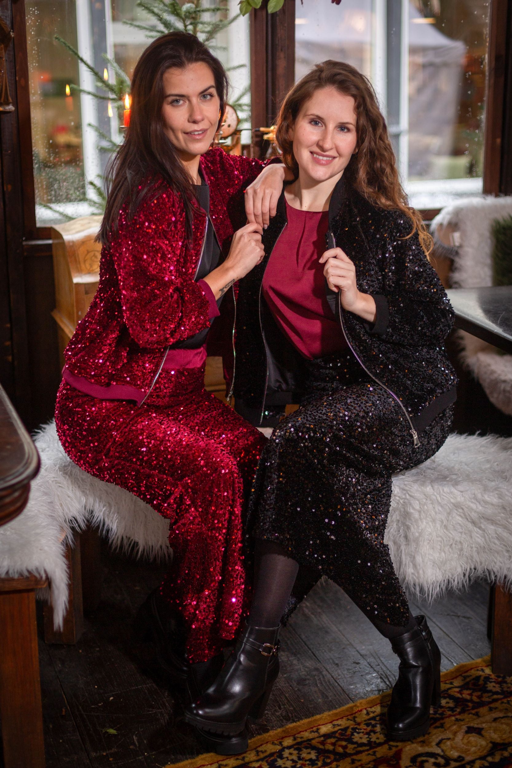 Ob in tiefem Schwarz oder kräftigem Bordeaux – diese Looks strahlen Klasse aus und unterstreichen Ihre Ausstrahlung. Die warmen Farben und der samtige Glanz fangen das magische Ambiente der Feiertage ein und machen jedes Outfit zu etwas Besonderem.