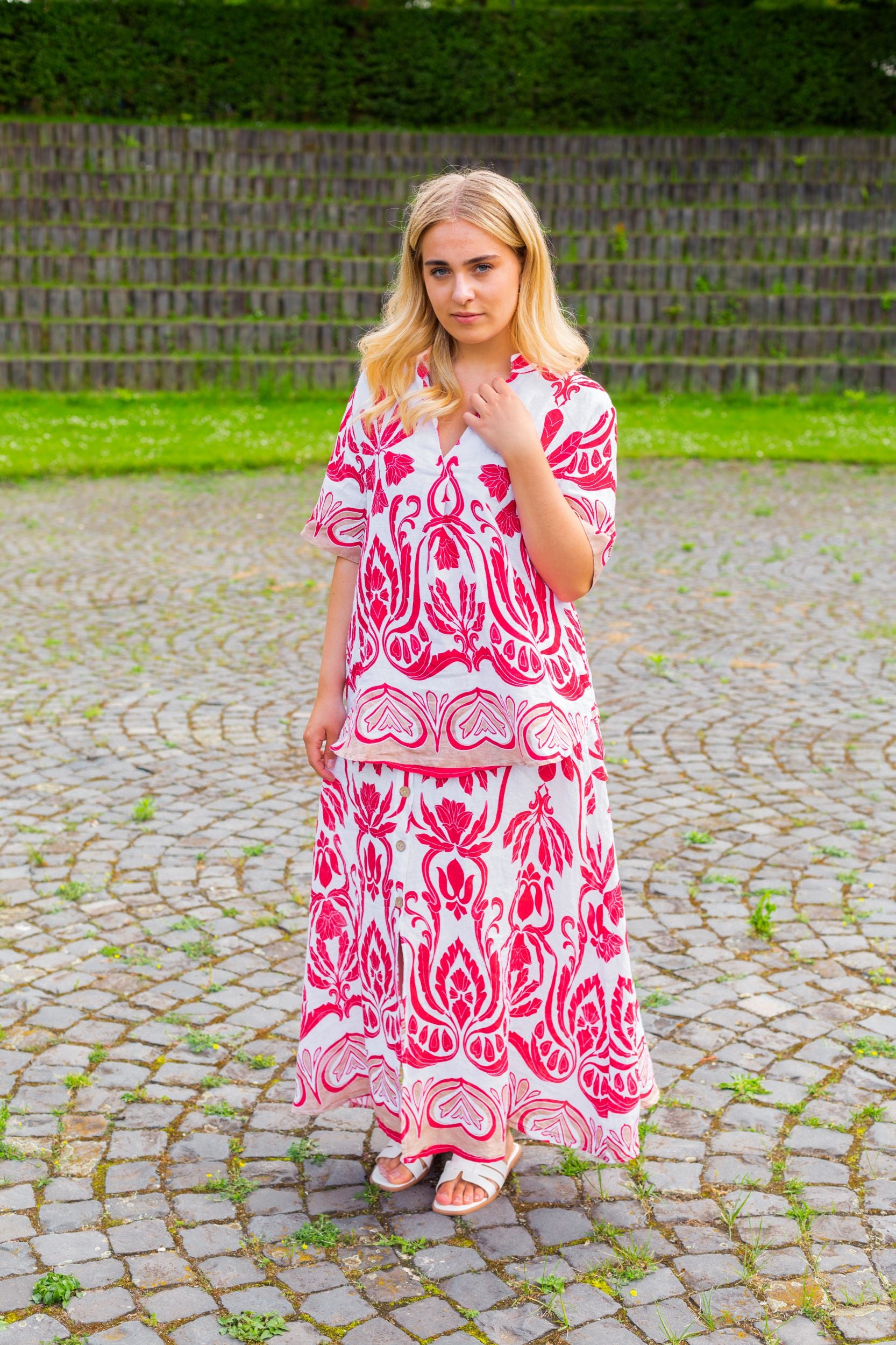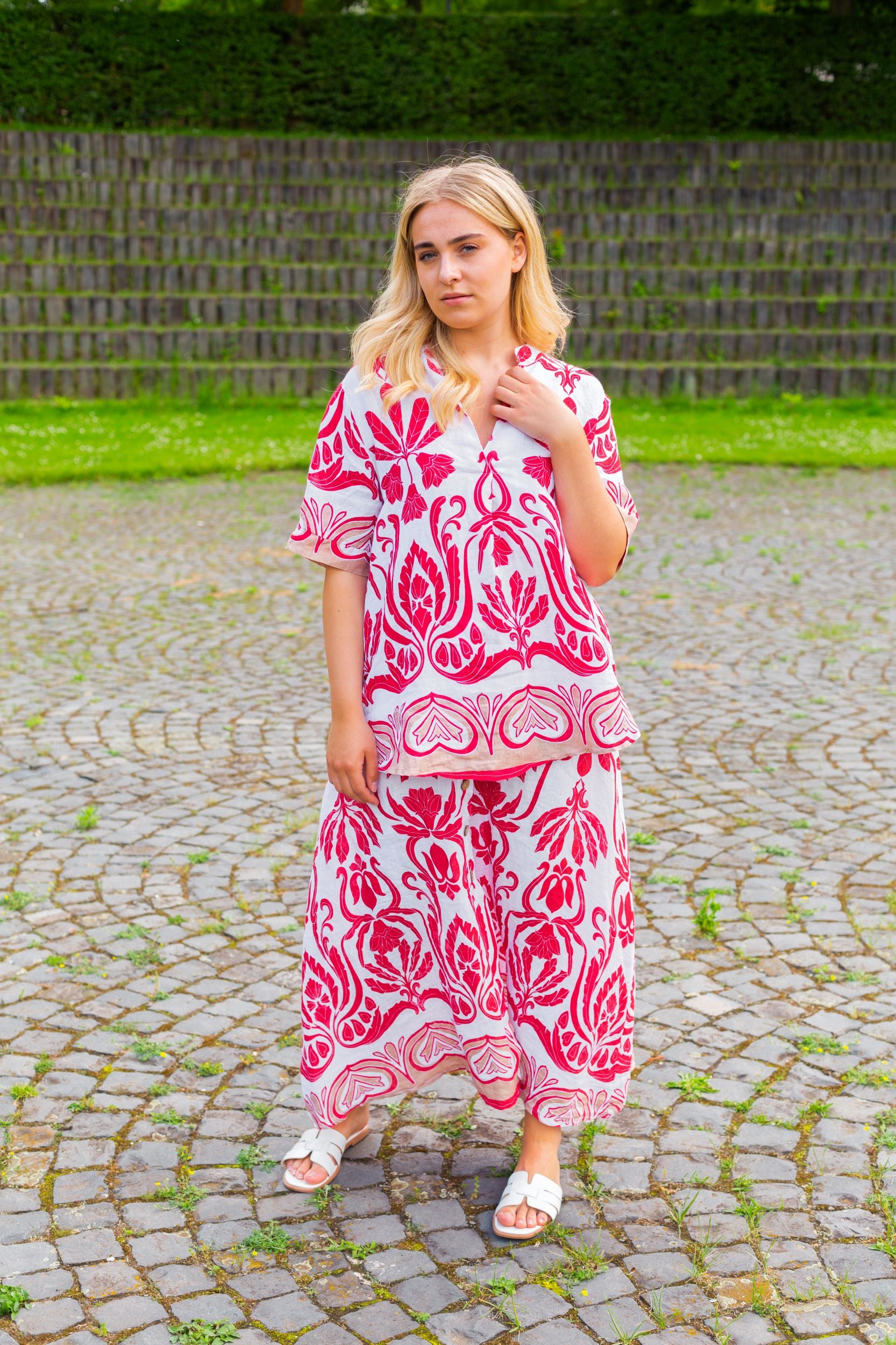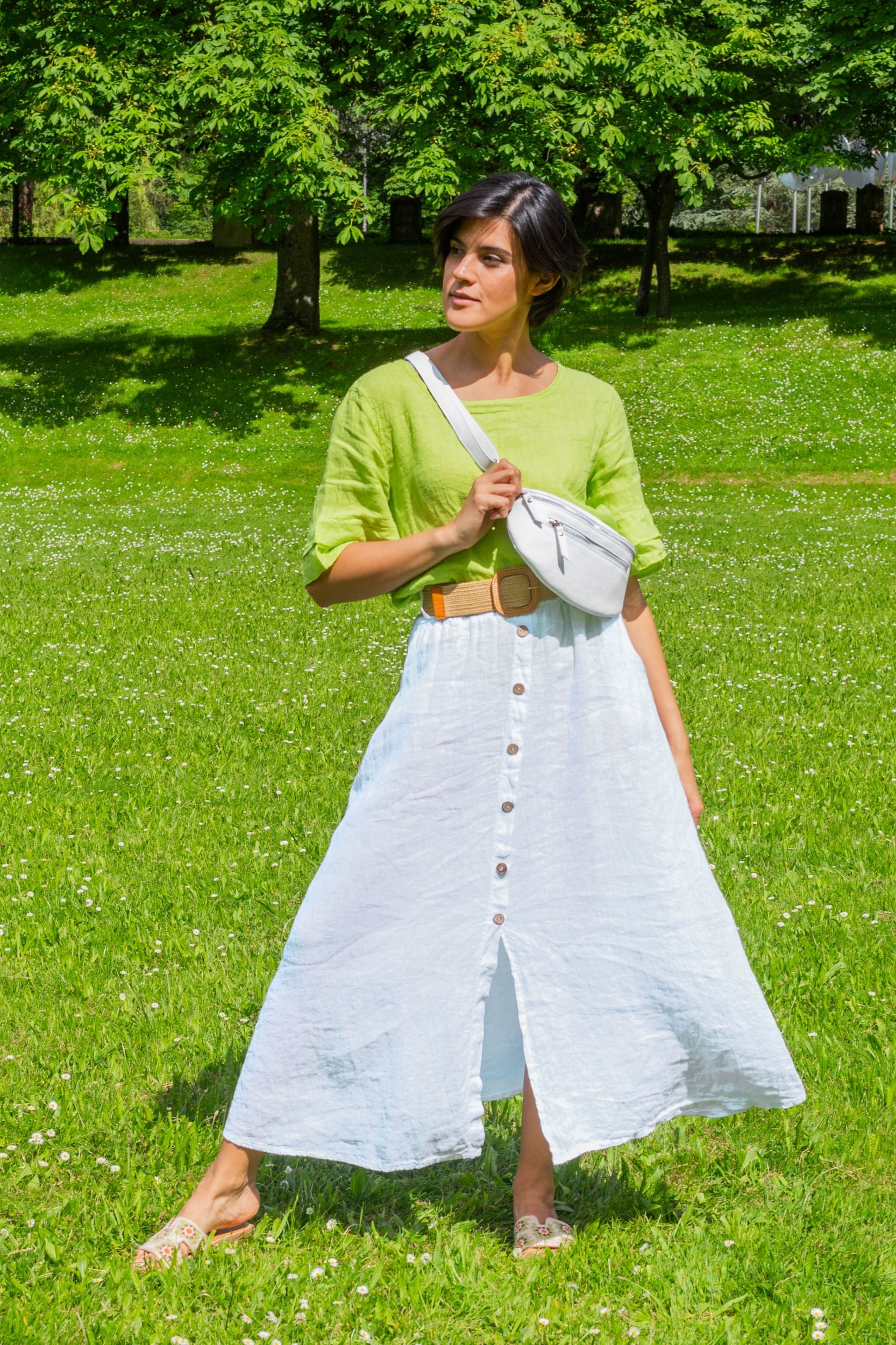 Unsere Kollektion bietet eine Palette natürlicher und moderner Farbtöne, die perfekt für die Sommergarderobe sind. Erdtöne, kühle Blautöne und klassische Weiß- und Rottöne lassen sich leicht kombinieren und verleihen jedem Outfit eine subtile Eleganz. Die natürliche Textur des Leinens verleiht jedem Stück eine besondere Tiefe und einen einzigartigen Charakter.