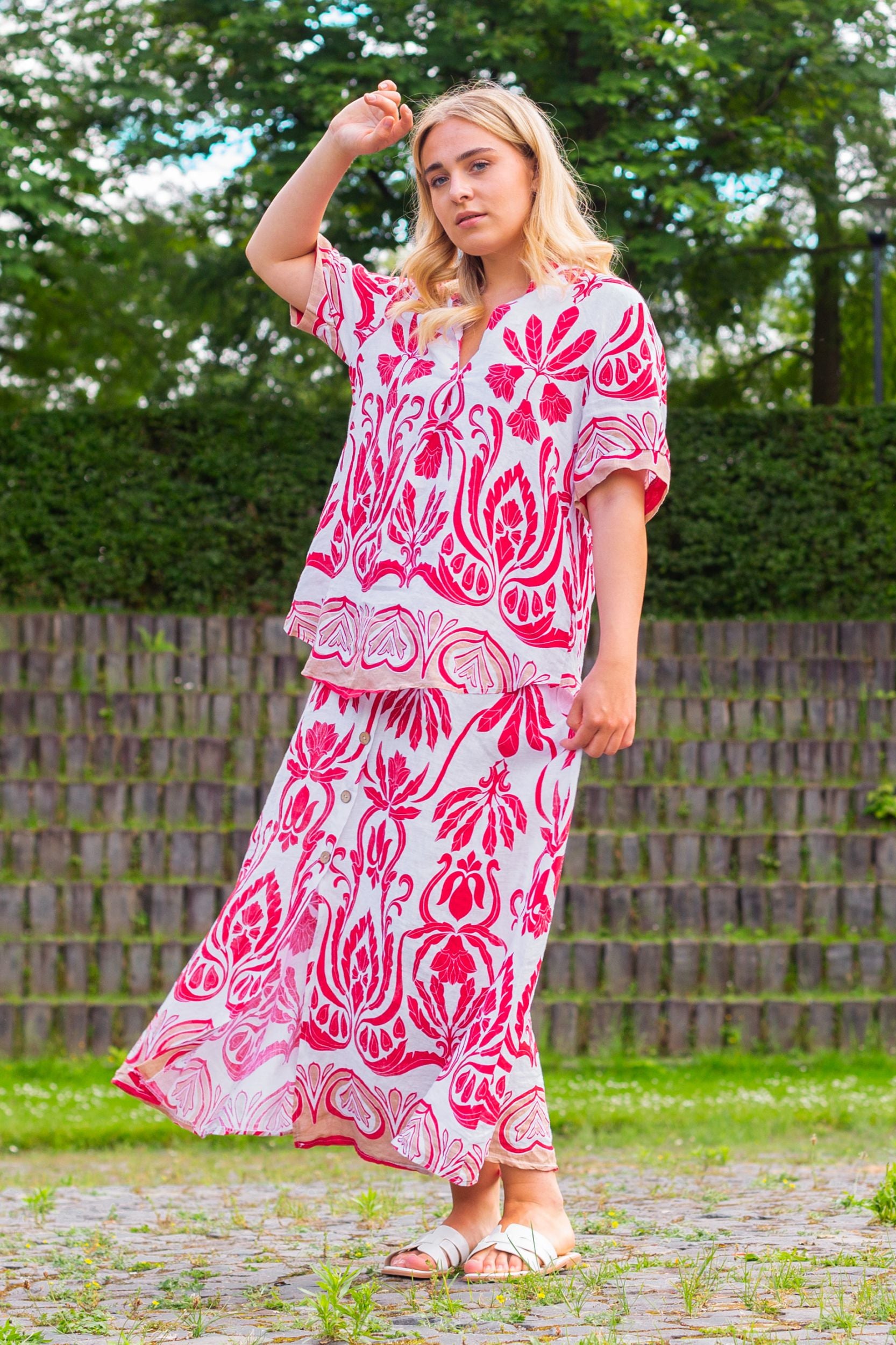 Tauchen Sie ein in die Welt der natürlichen Eleganz mit unseren Leinen-Outfits. Das atmungsaktive Material sorgt für ein angenehmes Tragegefühl, während die klaren Schnitte und dezenten Details Ihre feminine Seite betonen. Die hochwertigen Naturfasern sind nicht nur gut für die Umwelt, sondern auch besonders langlebig. Jedes Stück vereint zeitlosen Stil und angenehme Leichtigkeit – perfekt für heiße Tage.