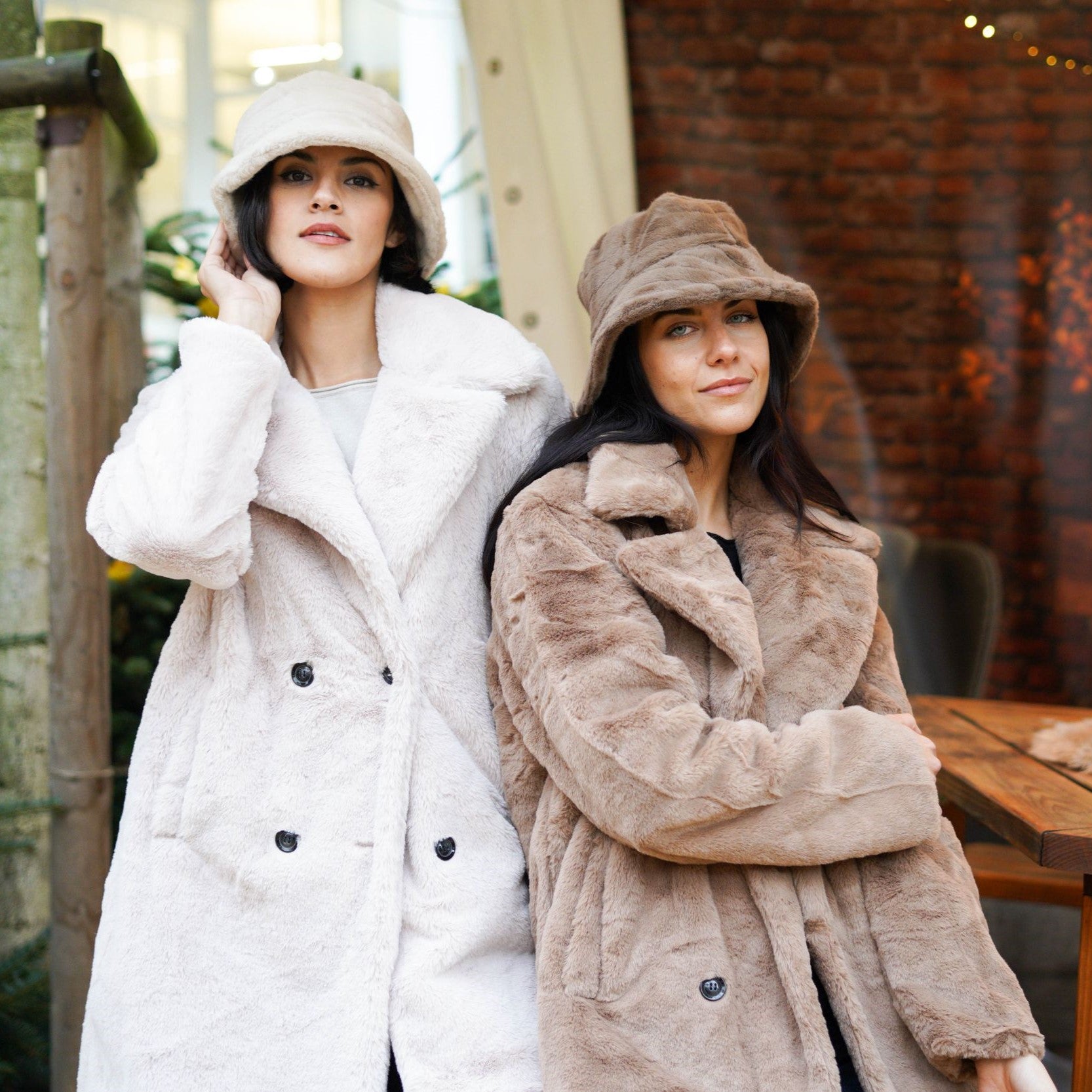 Ein besonderer Clou: Unsere Webpelzmäntel lassen sich hervorragend mit den passenden Bucket Hats kombinieren. Dieser angesagte Hutstil verleiht Ihrem Look eine trendige und moderne Note. Die harmonische Abstimmung zwischen Webpelzmantel und Bucket Hat schafft ein durchdachtes und modisches Gesamtbild, das Ihren persönlichen Stil unterstreicht. Tauchen Sie ein in die Kombinationsmöglichkeiten und lassen Sie sich von unserer Auswahl inspirieren – für einen Winterlook, der nicht nur warm, sondern auch absolut im Trend ist.