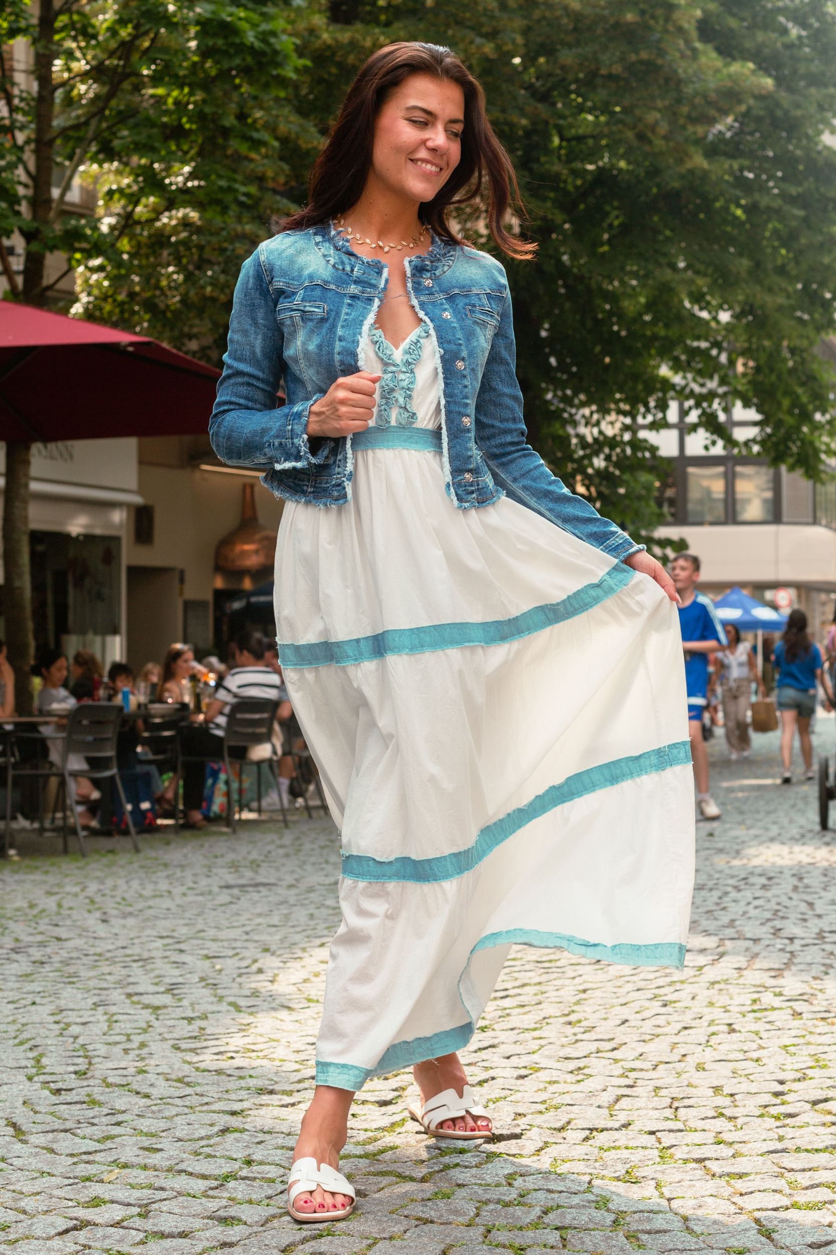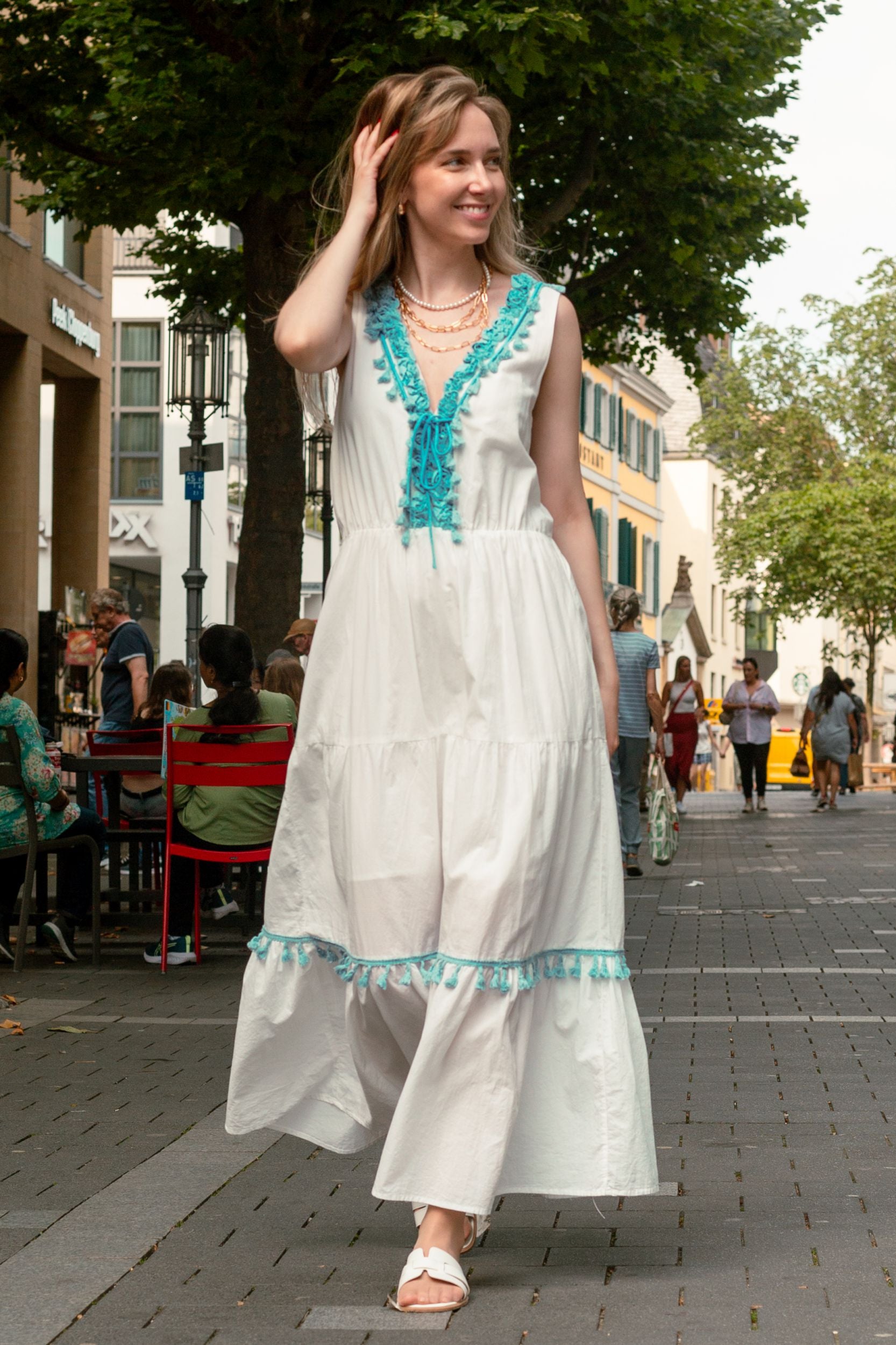 Die schlichte Eleganz eines langen weißen Sommerkleides verleiht Ihnen einen Hauch von Luxus und Exklusivität. Die Reinheit der weißen Farbe symbolisiert Frische und Unschuld, während die luxuriösen Materialien und die liebevollen Details den Kleidern eine edle Note verleihen. Diese Kleider sind die perfekte Wahl für Frauen, die einen stilvollen und anspruchsvollen Look suchen.